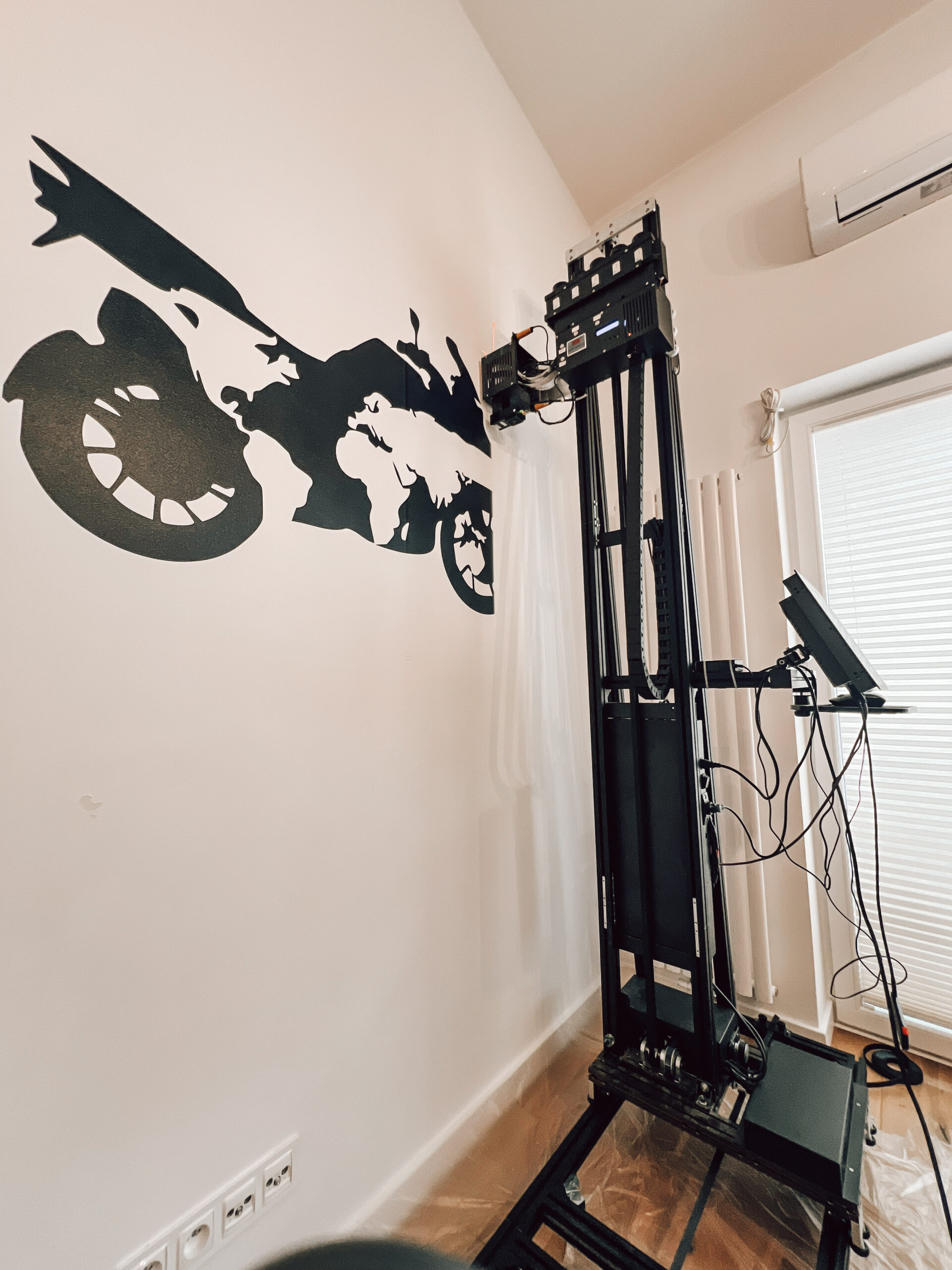 Jeśli chcesz nadruk wyżej – nic nie stoi na przeszkodzie. Drukarkę można ustawić na rusztowaniu lub podwyższeniu, co pozwala drukować znacznie wyżej.